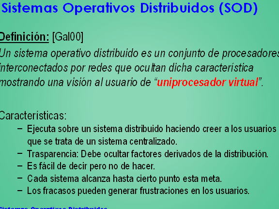 Los sistemas operativos distribuidos son aquellos que se ejecutan en múltiples máquinas interconectadas y trabajan en conjunto para proporcionar una funcionalidad coherente y transparente al usuario. Estos sistemas están diseñados para aprovechar los recursos disponibles en diferentes nodos de la red y ofrecen ventajas como la escalabilidad, la tolerancia a fallos y el rendimiento mejorado.