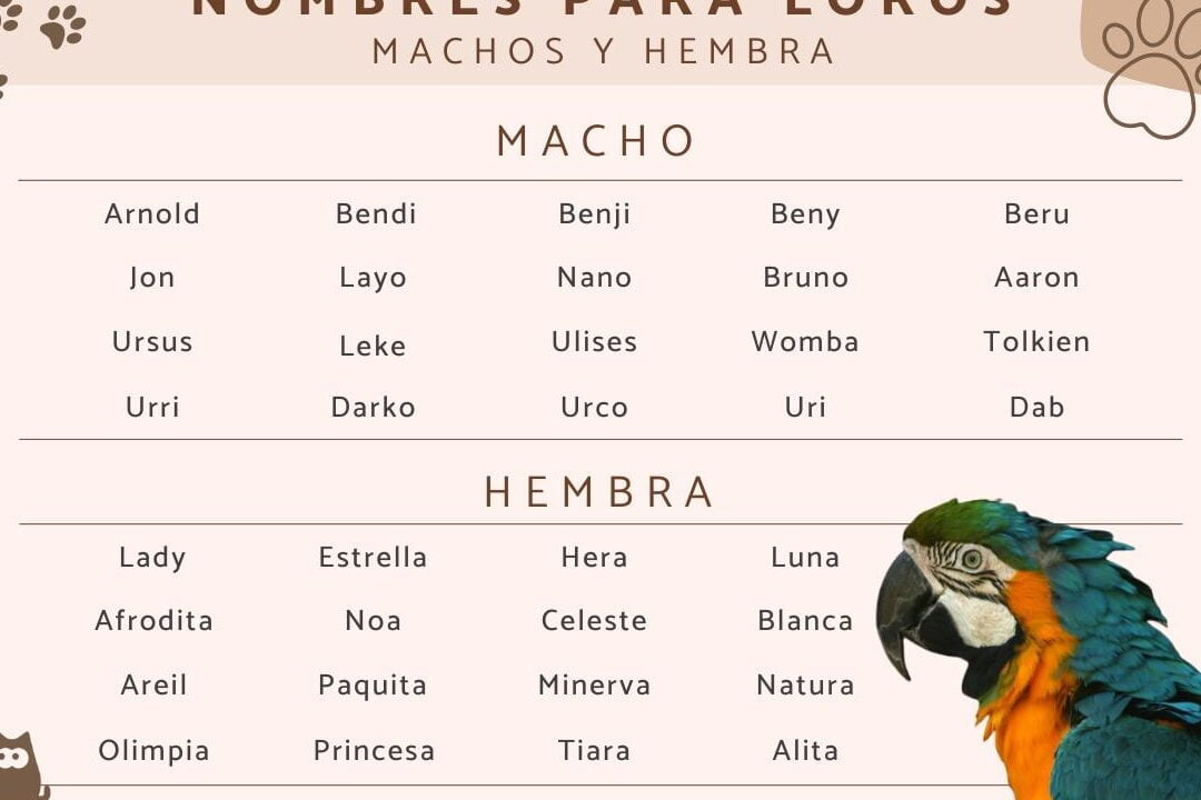 2. ¿Qué nombres de loros son adecuados para loros machos?